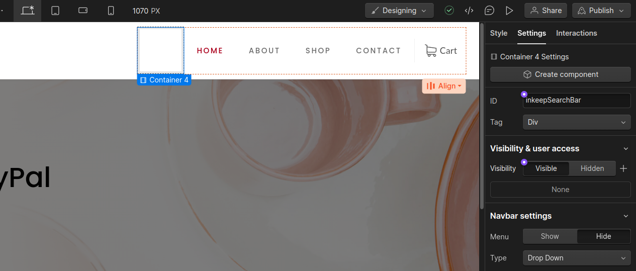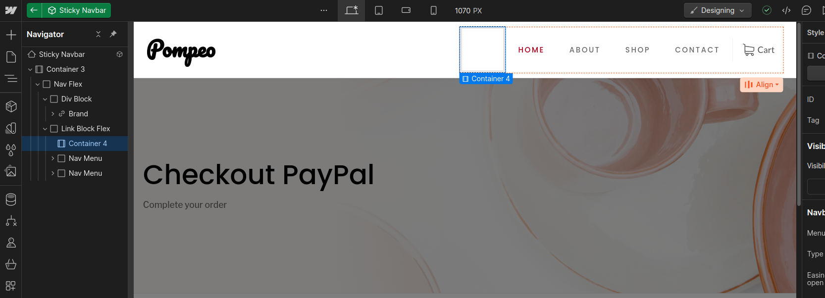 Next, you need to add a container for the widget. You can do this using the built-in Webflow designer.